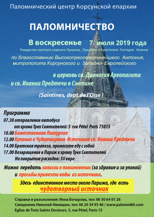 По благословению Высокопреосвященнейшего Антония, митрополита Корсунского и Западно- Европейского.