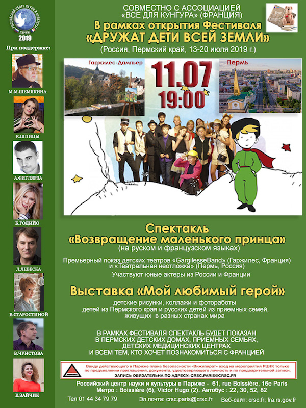 Совместно с Ассоциацией «Все для Кунгура» (Франция). В рамках открытия Фестиваля «Дружат дети все Земли».